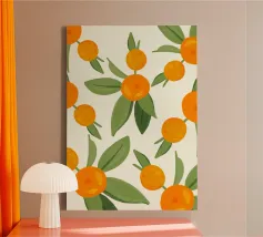 Dit aquarelpatroon in duindoorn is visueel opvallend. Het gebruik van oranje en groen creëert harmonie en geeft een gevoel van natuurlijkheid. Het patroon creëert beweging en energie en de herhaling van de duindoorn voegt eenheid toe aan het kunstwerk.