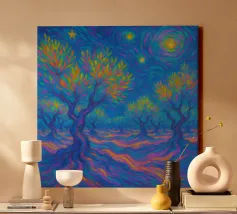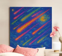 Verken een droombeeld van de ruimte met dit betoverende kosmische astronautenkunstwerk. Het ontwerp is geschilderd in een wervelende, op Van-Gogh geïnspireerde stijl en toont een eenzame astronaut die door een levendig sterrenstelsel zweeft vol gloeiende sterren en spiraalvormig licht. Rijk blauw, geel en warme accenten creëren een gestructureerde, emotionele sfeer die zowel vredig als buitenaards aanvoelt. Perfect voor liefhebbers van de ruimte, liefhebbers van surrealistische kunst en iedereen die op zoek is naar een betekenisvol, fantasierijk statement. Ideaal voor slaapkamers, kantoren, studio's en moderne interieurs die een gedurfde artistieke expressie waarderen.