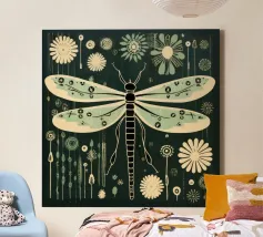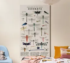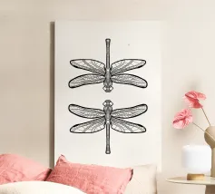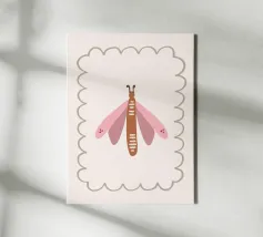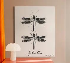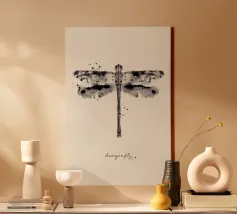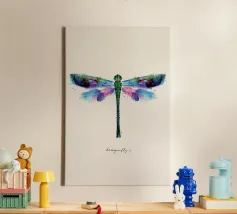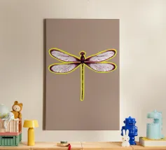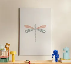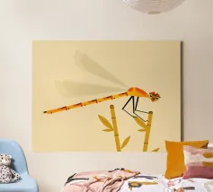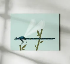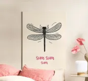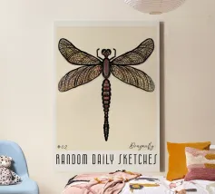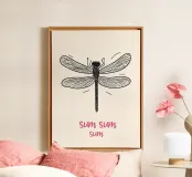 Deze vrolijke illustratie van een libel met de geestige roze tekst "Sum Sum Sum" vangt de lichtheid en speelsheid van de natuur op een minimalistische manier.