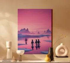 Stap in de kalmte en verwondering met "Whispering Pines - Path Through the Forest". Dit vredige kunstwerk toont een mistig boslandschap, waar hoge pijnbomen de wacht houden over een rustig pad met zacht gras en wilde bloemen. De gedempte tinten en het dromerige licht roepen gevoelens op van sereniteit, mindfulness en ontsnappen aan de natuur. Ideaal voor natuurliefhebbers, minimalisten of gezellige interieurs, dit stuk brengt de frisheid van het bos in je huis. Een herinnering om te vertragen, diep adem te halen en schoonheid te vinden in stilte.