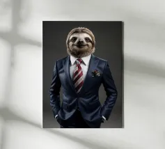Een langzame en rustige luiaard, gekleed in nette kantoorkleding en met kalm zelfvertrouwen naar de werkplek.