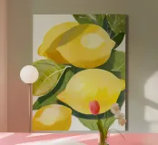 Kleurrijke bedrukte citroenen. Gegenereerd met AI (Canva).