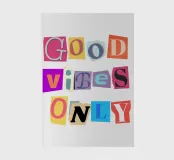 Geef je ruimte positiviteit en een speelse retro-esthetiek met deze digitale poster met "GOOD VIBES ONLY" in een kleurrijke uitgesneden letterstijl. Elke letter is uniek weergegeven in verschillende lettertypes, kleuren en texturen, die lijken op de typografie van losgeldbriefjes. Levendige tinten roze, oranje, geel, paars en blauw vormen samen een dynamische en energieke compositie tegen een witte achtergrond. Deze digitale poster van hoge kwaliteit, geleverd op 7000x5000 pixels en 300 dpi, brengt de uitmuntendheid van hedendaagse grafische kunst en een vrolijke boodschap naar je huis.