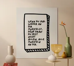 BAWA - Black and White Art is een ruimte voor kunst die zich concentreert op de essentie. Cartoons, typografie, plantkunde, illustraties en poëzie komen hier samen - teruggebracht tot de kracht van zwart en wit. Zonder afleiding, zonder compromis. Elk ontwerp is gemaakt met liefde voor detail en een duidelijk oog voor vorm, contrast en stemming. In deze minimalistische esthetiek vertelt elk werk zijn eigen verhaal: soms humoristisch, soms poëtisch, soms rustig - maar altijd expressief en vol persoonlijkheid. Zwart en wit scheppen helderheid. Ze maken emoties zichtbaar, lijnen levendig en gedachten precies. Het is precies dit effect dat BAWA kenmerkt: Kunst die gereduceerd lijkt en toch diep raakt. Alle prints worden in hoge kwaliteit geproduceerd zodat elke lijn, elke contour en elk woord haarscherp overkomt - tijdloos, modern en duurzaam. Of je nu op zoek bent naar een statement voor je huis, een cadeau met betekenis of kunst die rust en kracht combineert - BAWA brengt de schoonheid van eenvoud aan je muren.