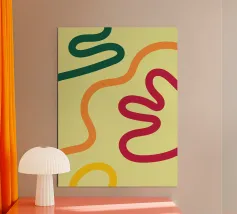 Zachte, vegende lijnen lopen in een zachte, continue beweging over het doek en creëren een gevoel van beweging zonder spanning, structuur zonder stijfheid. De vloeiende rondingen leiden het oog met gemak en vormen een landschap van rust en evenwicht. Minimaal en elegant, dit abstracte werk roept rust op en nodigt uit tot een rustige, contemplatieve pauze.