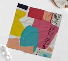 Een moderne en speelse abstracte compositie met een rasterachtige opstelling van kleurrijke, organische vormen. Het kunstwerk voelt aan als een verfijnde en evenwichtige puzzel van vorm en kleur.
