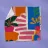 Een abstracte illustratie toont een kleurrijke trap versierd met een verscheidenheid aan potplanten, een mix van architectuur en plantkunde in een levendige, moderne compositie.