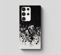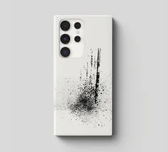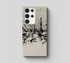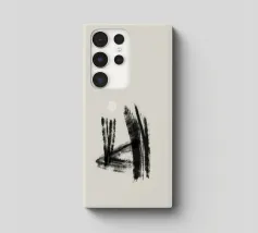 Modern en minimalistisch abstract met lijnen en verfspatten.