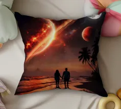 Een kolossaal, verweerd hart zweeft sereen boven een uitgestrekt, gebarsten landschap, een krachtig symbool van blijvende liefde in een verlaten wereld. Twee kleine figuurtjes staan erbij, wat bijdraagt aan de epische schaal en het filmische gevoel van dit surrealistische kunstwerk. Met zijn vintage tinten en tot nadenken stemmende beelden is dit werk een conversatiestarter en een eerbetoon aan de grote reis van de liefde.