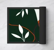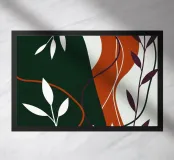 Deze moderne abstracte print heeft een rustgevend palet van diep smaragdgroen en warm terracotta oranje, geaccentueerd door sierlijke witte en pruimkleurige botanische elementen. De vloeiende, organische vormen en contrasterende kleuren creëren een gevoel van harmonie en natuurlijke beweging, waardoor het een perfect stuk is om een vleugje aardse verfijning in elke woonruimte te brengen.