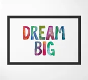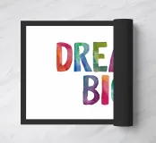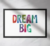 Inspire boundless imagination with our vibrant "Dream Big" typography art print. This uplifting message bursts to life in a dazzling array of rainbow hues, hand-painted in whimsical watercolour lettering on a crisp white background. Perfect for children's rooms, playrooms, or any space needing a splash of colour and motivation, this cheerful design encourages young dreamers to reach for the stars. The playful, artistic style appeals to both kids and adults alike, making it a versatile addition to any home or office. ideal for nurturing creativity and positivity in dreamers of all ages.