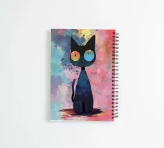cat whiskers big eyes abstract background colorful splatter effect wet paint look feline tail ears cute cartoon whimsical playful vivid colors gradient animal artistic contrast fantasy theme