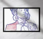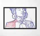 Marlene Dietrich with hat, cigarette and blazer, or jacket. Drawing red-blue, biros on paper.