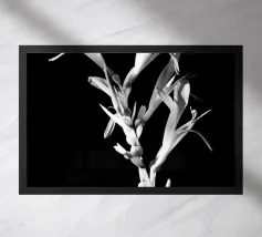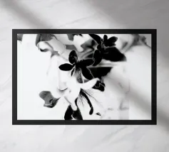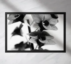 Deze fascinerende monochrome foto speelt meesterlijk met het spel van licht en schaduw en onthult een dramatisch boeket bloemen. Sommige bloemblaadjes baden in schitterend licht, waardoor hun delicate texturen en vormen worden benadrukt, terwijl andere zich terugtrekken in diepe, fluweelachtige duisternis, waardoor een scherp en meeslepend contrast ontstaat. De afwezigheid van kleur accentueert de ingewikkelde details en emotionele diepte van de compositie en nodigt kijkers uit om de subtiele nuances van licht en de diepe schoonheid in de schaduwen te verkennen. Het is een tijdloos werk dat een gevoel van mysterie, elegantie en het epos oproept.