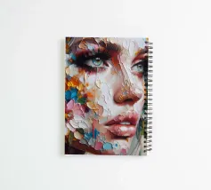 Portrait painting of female with colourful flowers and petals on her face.