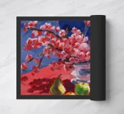 Elk werk begint zijn leven op een fysiek doek, waar ik de tactiele, onvoorspelbare aard van acrylverf en olieverf omarm. Deze tastbare creatie wordt vervolgens gescand en vormt de basis voor een nieuwe reis in het digitale rijk. Hier breng ik lagen aan, verbeter ik en verweef ik nieuwe elementen, waardoor een uiteindelijk kunstwerk ontstaat dat rijker en complexer is dan beide media alleen zouden kunnen bereiken. Het is een dialoog tussen het verleden en de toekomst, het echte en het virtuele.