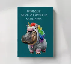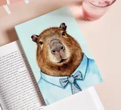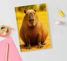 Een schattige capibara-illustratie omringd door motiverende tekst. De woorden moedigen individualiteit aan met een humoristische twist en benadrukken de charme van capibara's.
