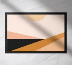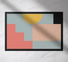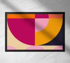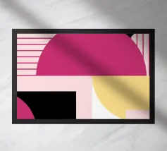 Omarm de esthetiek van modern design met deze opvallende geometrische abstracte kunstprint. De print heeft een fascinerende compositie met kleurblokken in roze, geel/oranje en zwart, gescheiden door krachtige diagonale lijnen. Een grote donkerrode/bruine ovale vorm is gelaagd over deze secties. Dit kunstwerk maakt gebruik van eenvoudige geometrische vormen en sterke kleurcontrasten om een visueel boeiend abstract stuk te creëren, waarin de interactie van vormen en tinten wordt onderzocht. Dit digitale kunstbestand van hoge kwaliteit heeft een verbluffende resolutie van 7000 x 5000 pixels bij 300 dpi, wat zorgt voor uitzonderlijke details en helderheid voor je posterprint. Een perfect