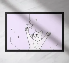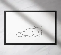 De speelse en avontuurlijke geest van een kat hangend aan een touwtje met deze minimalistische lijntekening. Een modern abstract kunstwerk dat nieuwsgierigheid, behendigheid en kattenkwaad symboliseert.