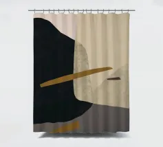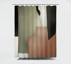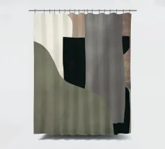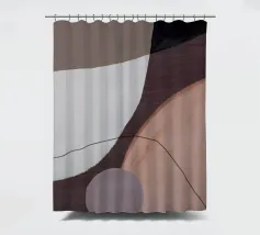 Abstracte vormen in gedempte tinten creëren een harmonieuze compositie. Verschillende tinten bruin, zwart en beige domineren de visuele ruimte met subtiele accenten van groen en wit.