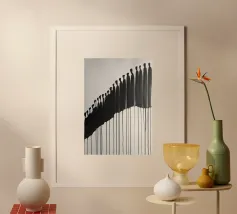 Dit unieke kunstwerk toont de beklijvende kracht van aanraking en gebaar. De silhouetten van zwarte handen op de witte achtergrond creëren een harmonieus evenwicht tussen vorm en leegte, nabijheid en afstand. Deze minimalistische compositie voegt diepte toe aan elke kamer en zet aan tot nadenken over menselijke verbindingen. Ideaal voor moderne interieurs die subtiele maar betekenisvolle accenten willen leggen.