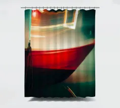 De combinatie van schaduwen en reflecties creëert een hypnotiserende scène, waarin een boot lijkt op te duiken uit een lichtgevend doek. Een levendig eerbetoon aan licht en abstracte kunst.