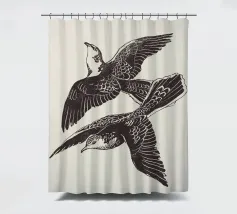 Dit minimalistische ontwerp toont twee zwaluwen die sierlijk door de lucht glijden. De zwart-witte illustratie en de eenvoudige, heldere achtergrond geven het motief een tijdloze en elegante uitstraling. Dit ontwerp is perfect voor liefhebbers van natuurmotieven en minimalistische kunst en brengt rust en lichtheid in elke kamer. Of het nu als muurschildering, kussen of mok is, dit motief is een stijlvol en modern accent voor elk huis en past bij verschillende interieurstijlen.