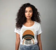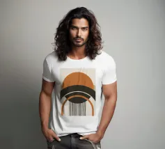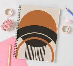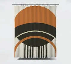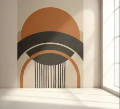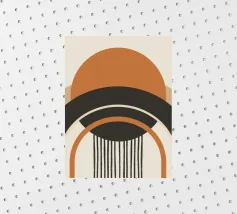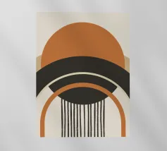 Dit artistieke ontwerp speelt met harmonieuze bogen en een warm kleurenpalet van oranje, zwart en beige. De gebogen lijnen en centrale halve cirkel creëren een moderne maar rustgevende compositie. Perfect voor woonaccessoires zoals muurschilderingen, kussens of mokken om elke kamer een stijlvolle, minimalistische touch te geven. Een tijdloos motief voor liefhebbers van abstracte kunst en geometrische vormen.