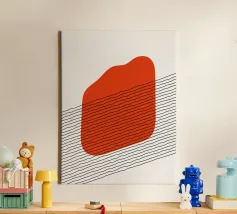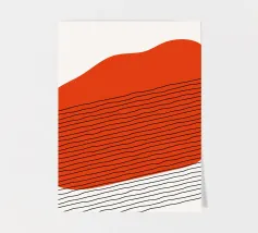 Dit moderne kunstwerk combineert een organische, fel oranje vorm met vloeiende, zwarte golvende lijnen op een neutrale achtergrond. De minimalistische esthetiek en contrasterende elementen geven het ontwerp een eigentijds en dynamisch gevoel. Dit motief is perfect voor muurschilderingen, mokken, mobiele telefoonhoesjes of kussens en brengt artistieke elegantie in elk huis. Ideaal voor designliefhebbers en iedereen die houdt van abstracte en moderne decoratie.