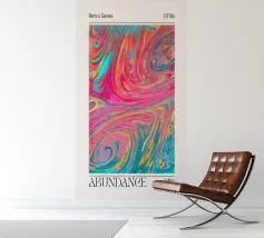Dompel jezelf onder in levendige welvaart met de "Abundance" poster uit onze "Retro Series 1970s" galerietentoonstelling. Dit fascinerende abstracte werk heeft een dynamische werveling van kleuren, die doet denken aan gemarmerde psychedelische kunst uit de jaren 70. Dominante tinten van helder fuchsia, levendig oranje, elektrisch groenblauw en een vleugje geel creëren een betoverende stroom die gevoelens van energie en grenzeloze mogelijkheden oproept. De gedurfde, retro typografie omlijst dit opvallende kunstwerk, waardoor het een perfect statement stuk is. Dit is een digitale poster van superieure kwaliteit, zorgvuldig gemaakt op 7000x5000 pixels en 300 dpi, waardoor je verzekerd bent van