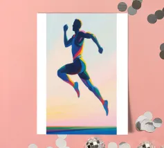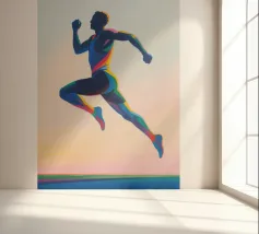 atleet die hoog met fauvisme schilderende kunststijl springt