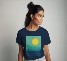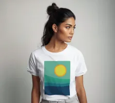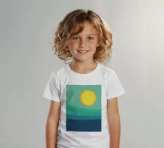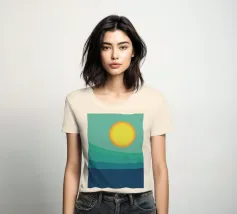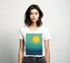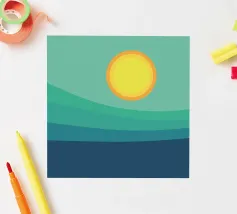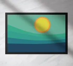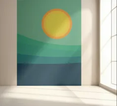 Diepblauw, frisgroen en een opvallende oranje zon creëren een dynamische zeesfeer met een heldere, eigentijdse esthetiek. Dompel jezelf onder in een wereld van heldere vormen en levendige kleuren. Dit abstracte kunstwerk nodigt je uit om te dromen zonder overladen te worden. Het is een statement voor iedereen die van eigentijds design houdt en de rust van de zee wil voelen.