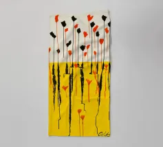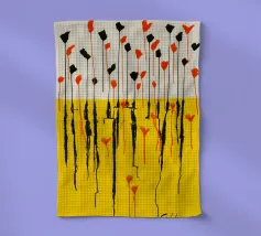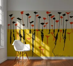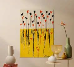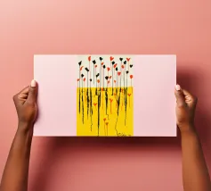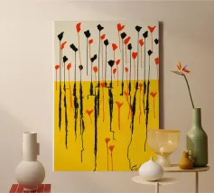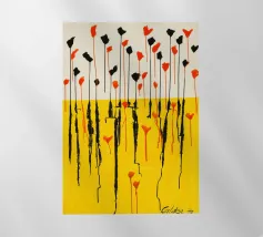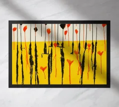 Voeg een stukje abstract meesterwerk toe aan je interieur met deze Alexander Calder print, waarschijnlijk getiteld 'Drops'. Dit iconische kunstwerk heeft expressieve verticale lijnen en vormen in zwart en levendig rood, die een dynamisch druipeffect creëren tegen een gedurfde witte en gele achtergrond. Geproduceerd als een digitale kunstdruk van hoge kwaliteit met een indrukwekkende resolutie van 7000 x 5000 pixels bij 300 dpi, zorgt het voor uitzonderlijke details en trouw aan de originele textuur en kleur, geschikt voor afdrukken in verschillende formaten. Een essentieel stuk voor kunstverzamelaars en bewonderaars van Mid-Century Modern en abstracte expressie.