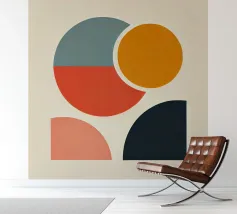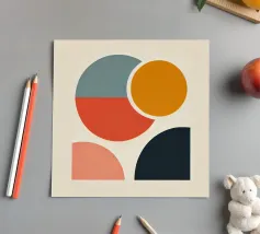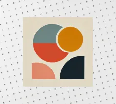 Een levendig abstract kunstwerk met sterke, matte kleuren in zeefdrukstijl.