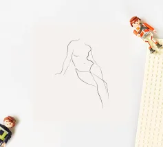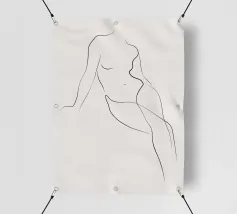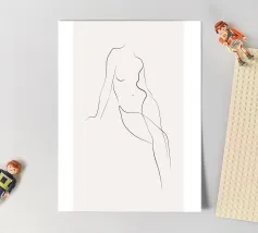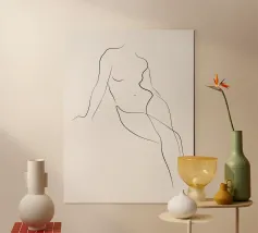 Een delicate viering van de menselijke vorm, gevangen in slechts een paar vloeiende lijnen. Dit minimalistische kunstwerk combineert zachtheid, elegantie en sensualiteit en creëert een sereen moment van intimiteit en schoonheid. Perfect voor hedendaagse interieurs die op zoek zijn naar een vleugje rust en artistieke expressie.