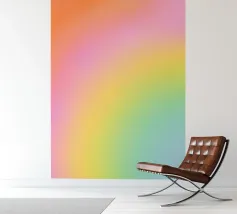 Een rustgevend en dromerig regenboogverloop waarin zachte snoepjeskleuren moeiteloos overgaan van oranje naar roze, geel, groen en blauw. Dit abstracte kunstwerk straalt positiviteit en optimisme uit en creëert een gevoel van rust en vreugde. Perfect om elke ruimte op te fleuren met een zacht maar opbeurend vleugje kleur.