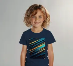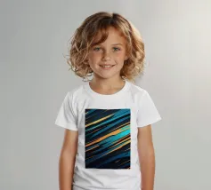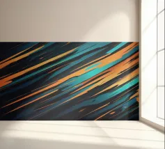 Levendige strepen blauw en oranje creëren een opvallend abstract ontwerp tegen een donkere achtergrond, geschikt voor behang of digitale kunst.
