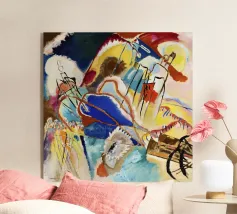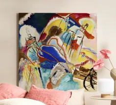 Duik in de dynamische wereld van Wassily Kandinsky's "Improvisatie nr. 30 (Kanonnen)", een baanbrekend werk van het abstract expressionisme. Dit levendige meesterwerk bruist van energie en toont Kandinsky's baanbrekende verkenning van kleur, vorm en emotie, vrij van objectieve representatie. Het samenspel van gedurfde kleuren en expressieve lijnen creëert een krachtige visuele symfonie. Onze eersteklas poster reproduceert minutieus elk ingewikkeld detail en elke levendige tint. Gedrukt met een indrukwekkende resolutie van 7000 x 5000 pixels en 300 dpi, zorgt de digitale kunstkwaliteit voor een uitzonderlijk scherpe en rijke reproductie,