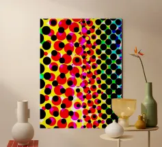 Deze opvallende abstracte compositie van Emmanuel Signorino combineert levendige rode, gele, zwarte en neonkleuren in een speelse dans van overlappende cirkels. Een opvallend stuk moderne muurkunst dat energie, beweging en een knallende pop flair toevoegt aan elk interieur. Perfect om een vleugje hedendaagse geometrie en levendig contrast toe te voegen aan je woonruimte, studio of kantoor.