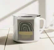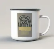 Abstract en modern kunstwerk met organische en geometrische vormen en penseelstreken in groen, geel en zwart. Met subtiele vintage texturen creëert het een retro look en feel. Modern, Retro, Landelijk, Nieuw Landelijk, Natuurlijk Wonen, Boheems en Scandinavisch Wonen.