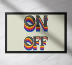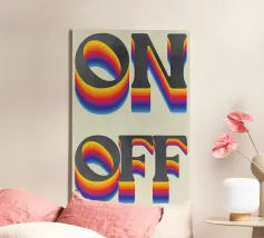 Fleur je kamer op met deze retro typografische muurkunst met 3D regenboogletters. Perfect om kleur en persoonlijkheid toe te voegen aan elke kamer. - 🖼️ Ontwerp: Vette "ON OFF" tekst met levendige regenboogverlopen in een vintage-geïnspireerde 3D-stijl. - Kleuren: Een prachtig palet van rood, oranje, geel, groen, blauw en paars voor een dynamisch, opvallend effect. - Perfect voor: Woonkamers, kantoren, studentenhuizen of andere ruimtes die een funky retro vibe nodig hebben. - Geweldig cadeau: Ideaal voor liefhebbers van kleurrijke decoraties of retro-esthetiek.