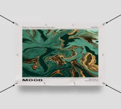 Duik in een golf van kleur met deze Retro Psychedelia Series print, geïnspireerd op kunst uit de jaren 1960. Dit abstracte ontwerp heeft een betoverend wervelend patroon van groen, blauw en glinsterend goud, waardoor een dynamisch vloeiend kunsteffect ontstaat. Het belichaamt de levendige, experimentele geest van psychedelische kunst en retro design. Perfect om een vleugje kleur, beweging en vintage vibe toe te voegen aan je woonruimte, studio of galeriemuur. Deze print is gemaakt van een digitaal bestand van 7000 x 5000 pixels met een hoge resolutie van 300 dpi en biedt uitzonderlijke kwaliteit en details.