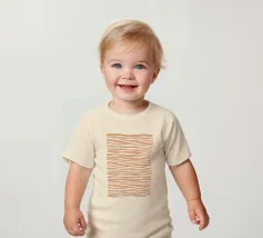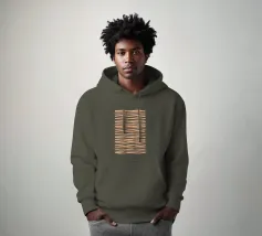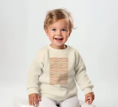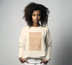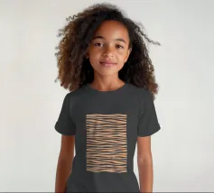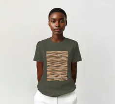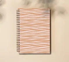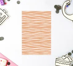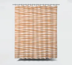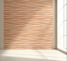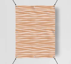 Stijlvol neutraal zebrapatroon, met golvende zebrastrepen in karamelbruin, op een lichtbeige achtergrond.