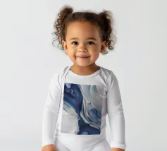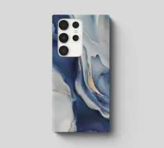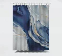 Zachte wervelingen van marineblauw en lila krullen als marmeren aders in een dromerige bloemenprint.