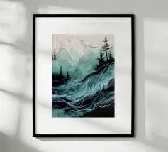 Stap in een rustig, buitenaards landschap waar een mysterieuze, gepolijste zilveren bol boven een zacht kronkelende rivier hangt. Deze droomachtige scène baadt in een zacht, etherisch licht, waarbij de reflectie van de bol over het wateroppervlak kabbelt en abstracte patronen van licht en schaduw creëert. De oevers zijn bekleed met delicaat, vederlicht riet in gedempte tinten wit en grijs, wat bijdraagt aan de serene en mystieke sfeer. Dit werk is een fascinerende mix van natuurlijke schoonheid en surrealistische elementen, perfect voor diegenen die houden van kunst die een gevoel van rust, verwondering en introspectie oproept.