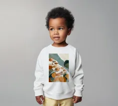Onze baby sweatshirts bestaan uit 85% biologisch katoen en 15% gerecycled polyester.