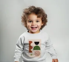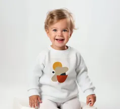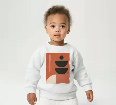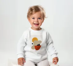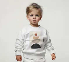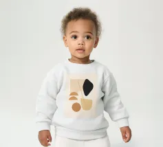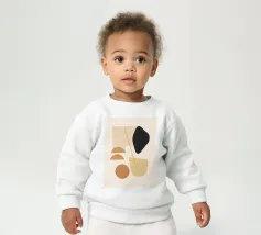 Onze baby sweatshirts bestaan uit 85% biologisch katoen en 15% gerecycled polyester.