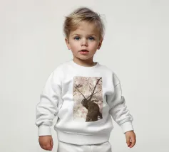 Onze baby sweatshirts bestaan uit 85% biologisch katoen en 15% gerecycled polyester.