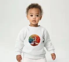 Onze baby sweatshirts bestaan uit 85% biologisch katoen en 15% gerecycled polyester.