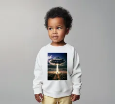 Onze baby sweatshirts bestaan uit 85% biologisch katoen en 15% gerecycled polyester.